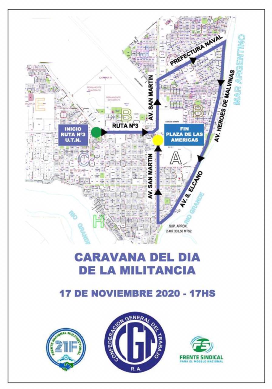 Informamos el circuito que tendrá la movilización del 17 de Noviembre en la ciudad de Río Grande y los Gremios que están al frente de la Organización de la misma