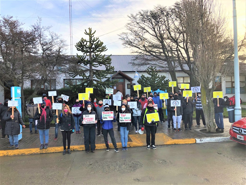 Integrantes de la “Agrupación de Desempleados Fueguinos” se congregaron pacíficamente frente al Municipio de Rio Grande en calle Sebastián Elcano 203.