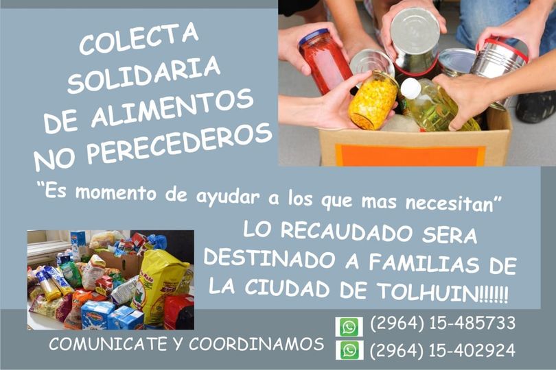 Colaboremos en esta Colecta Solidaria de Alimentos No Perecederos para nuestros vecinos de la localidad de Tolhuin.