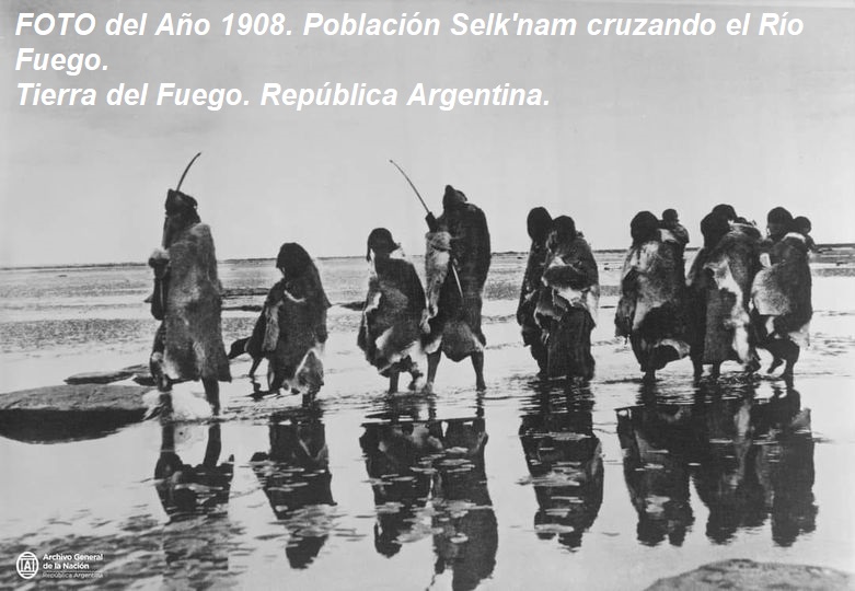 FOTO del Año 1908. Población Selk’nam cruzando el Río Fuego.
