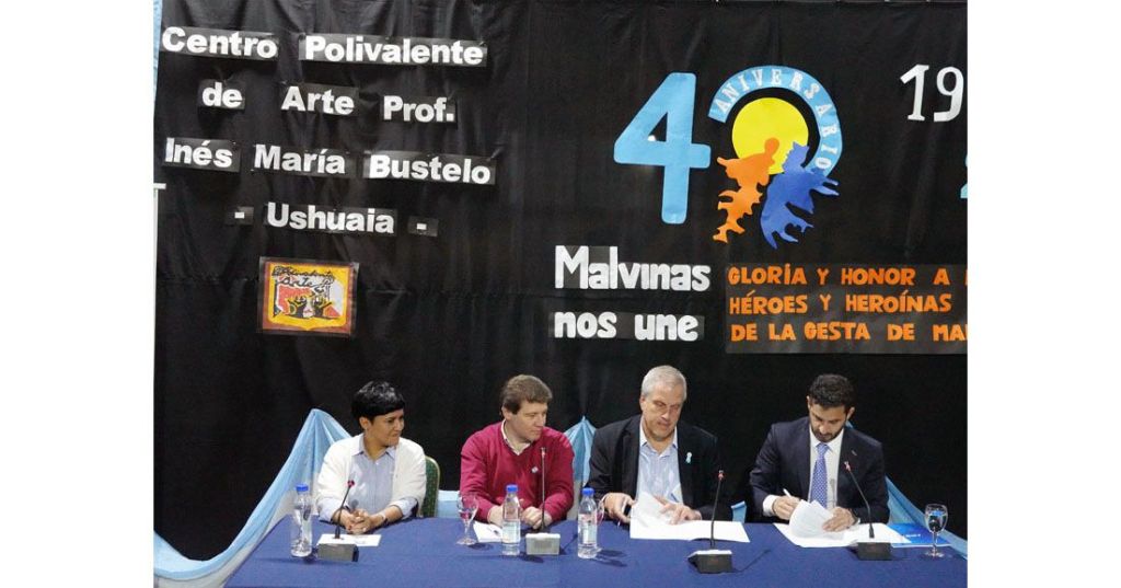 El acto se realizó en el Colegio Polivalente de Arte «Prof. Inés María Bustelo» de la ciudad de Ushuaia. Previo a la firma los alumnos y alumnas de la especialidad de música entonaron una canción en honor y memoria de los ex combatientes caídos y de reconocimiento para los veteranos presentes. También realizaron una versión del Himno Nacional Argentino que derivó en un aplauso casi interminable por parte de todos los presentes.
