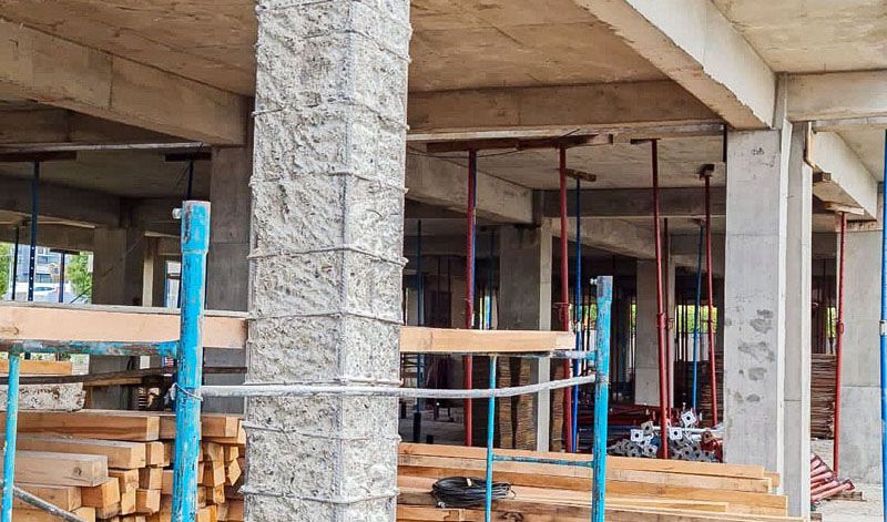 Por otro lado, la empresa trabaja sobre las columnas existentes en el lugar, realizando el picado de las mismas para dejar la armadura de hierro a la vista.