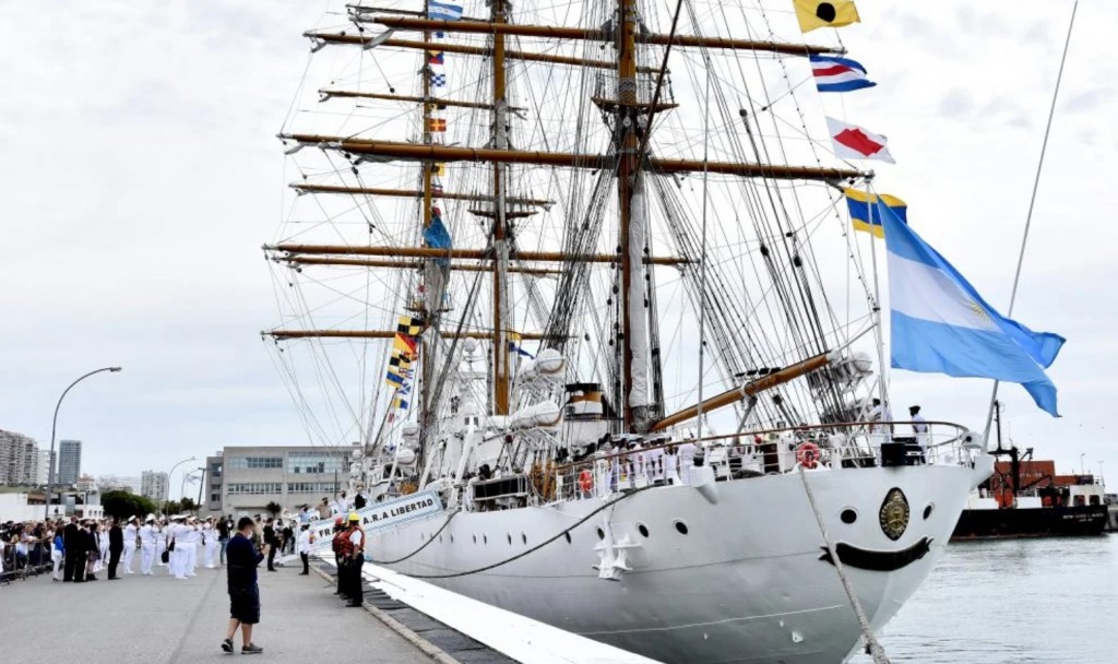Está previsto que el Buque Escuela de la Armada Argentina, que está al mando del Capitán de Navío Carlos Pedro Schavinsky, comience su zarpada a las 10.