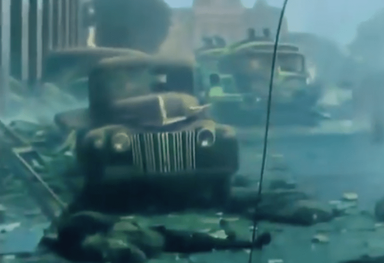 El video que editó Jones recuerda que uno de las bombas cayó sobre un trolebús que llevaba a chicos de una escuela.