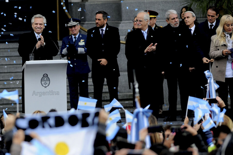 Tras entonar el himno nacional argentino, el mandatario, acompañado por ministros y ministras de su gabinete, dedicó unas palabras de reconocimiento al creador de la bandera argentina, Manuel Belgrano, fallecido el 20 de junio de 1820.