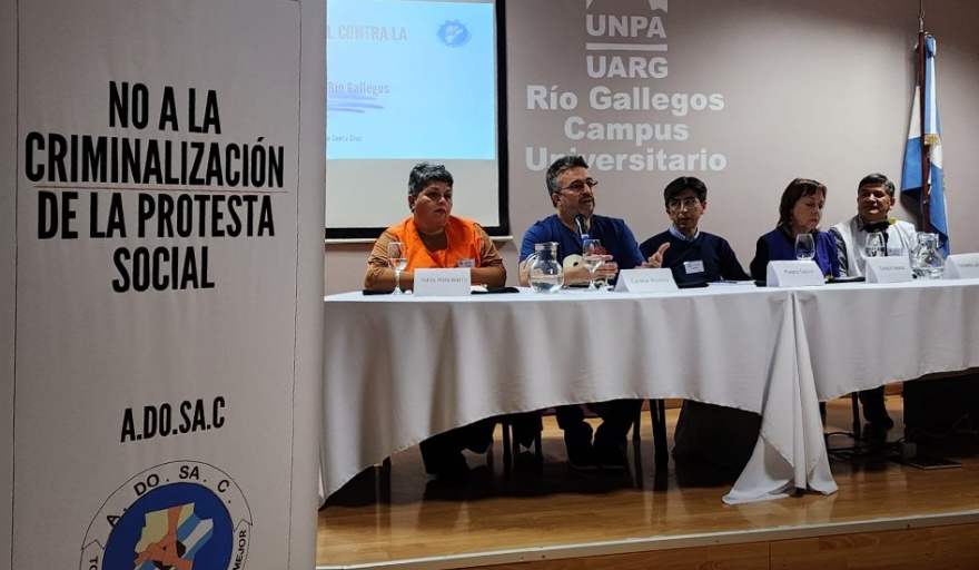 Este jueves 29 de septiembre se llevó adelante -en el salón Iris Bergero de la Universidad Nacional de la Patagonia Austral en la ciudad de Río Gallegos, Provincia de Santa Cruz- la primera Jornada Nacional Contra la Criminalización de la Protesta Social organizada por la Asociación de Docentes de Santa Cruz (ADOSAC). Por Tierra del Fuego participó el secretario General del SUTEF, Horacio Catena.