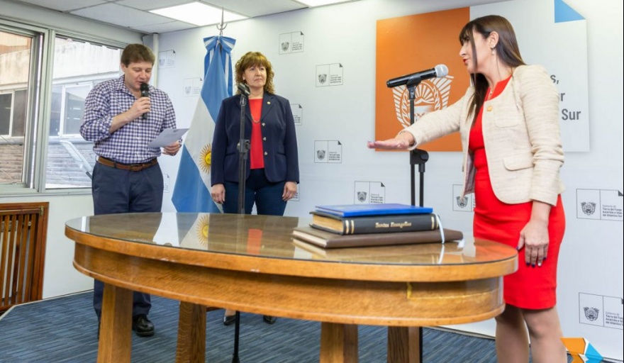 La Presidenta del Parlamento, vicegobernadora Mónica Urquiza, acompañó al Gobernador de Tierra del Fuego, prof. Gustavo Melella en el acto donde prestó juramento a la ministra de Trabajo, Lic. Karina Fernández. “Agradezco a Karina haber aceptado este desafío”, dijo Urquiza que además resaltó que el cargo sea ocupado por una mujer.