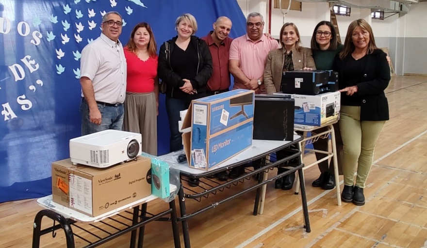 De la entrega en el Trejo Noel participaron Carina Trejo, secretaria Gremial de AMET; Elisabeth Benito, Secretaria Adjunta; además de Ana Berbel, representante de Total Austral y autoridades del colegio. La donación incluyó computadora, proyector, entre otros elementos.