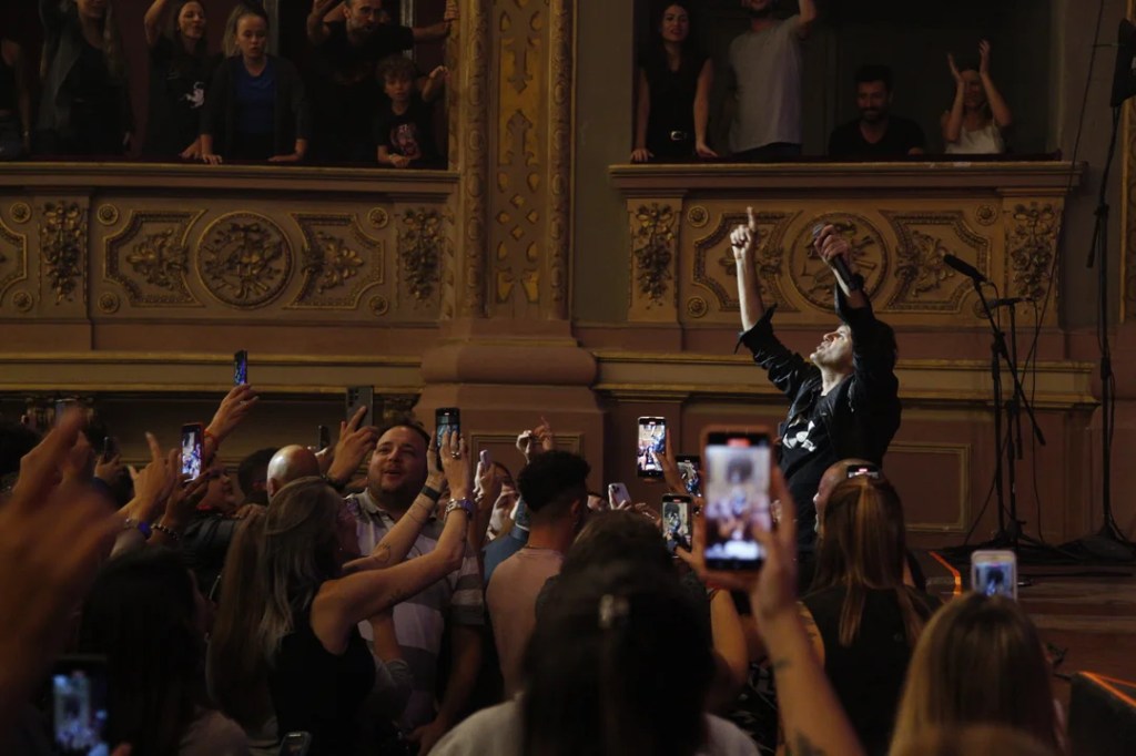 El clima está encapotado, pero a nadie le importa. Les piojoses están de fiesta. Se ven remeras con tachas, camperas rotas con brillos, botas de cuero pero también zapatillas de lona. No es el típico ritual. Es que Andrés citó a la gente en un teatro del centro. Las cosas están cambiando. “En un momento pensé en decirles que vengan de gala”, dice, en uno de sus numerosos intercambios con el público. El show transcurre entre monólogos, anécdotas, chistes e intercambios con la gente: un grado de intimidad que no logra en los estadios. Parece un café concert con un artista que conocemos hace mucho y cuyas canciones son himnos de nuestros corazones. El café concert piojoso incluye una orquesta de más de cuarenta personas, en un edificio histórico. “Capaz era demasiado venir de gala”, reflexiona Ciro después, con ese tono entre cansino y arrabalero de siempre.