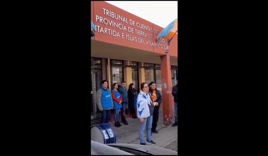 Diferentes sectores gremiales del ámbito estatal y privado, se manifestaron frente al Tribunal de Cuentas de la Provincia, en calle 12 de Octubre 131 de la ciudad de Ushuaia. Allí expresaron su respaldo a la secretaria General de APOC, Valeria Regueiro, y su rechazo al accionar de las autoridades del organismo de control. La propia sindicalista adelantó que “vamos a llevar adelante más acciones, esto continúa por las paritarias que nosotros estábamos pidiendo hace 4 meses atrás y que, seguimos sosteniendo, no fueron contestadas”. También se reclama su reposición en el cargo que tenía.