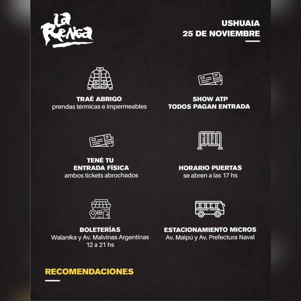 Las puertas del predio del Viejo Aeropuerto se abren a las 17.00 y el show comenzará 21.00 puntual.