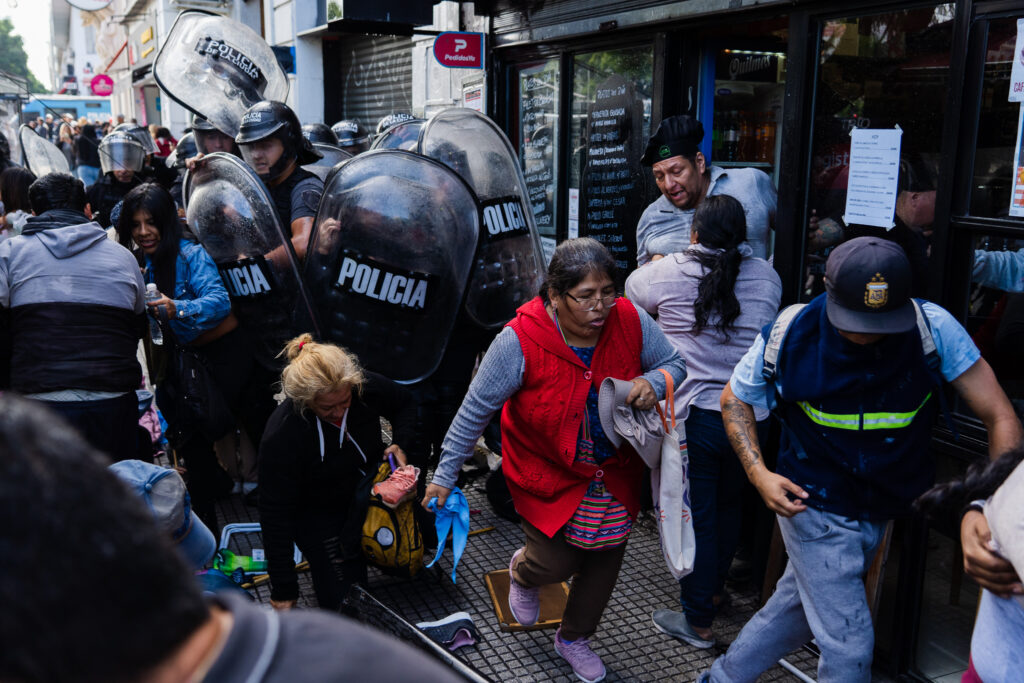 Al principio hubo corridas por presión de las fuerzas de seguridad, hasta que el despliegue ocupó todo el ancho de la avenida y comenzó a avanzar contra los manifestantes empujándolos hacia el lado de Constitución.