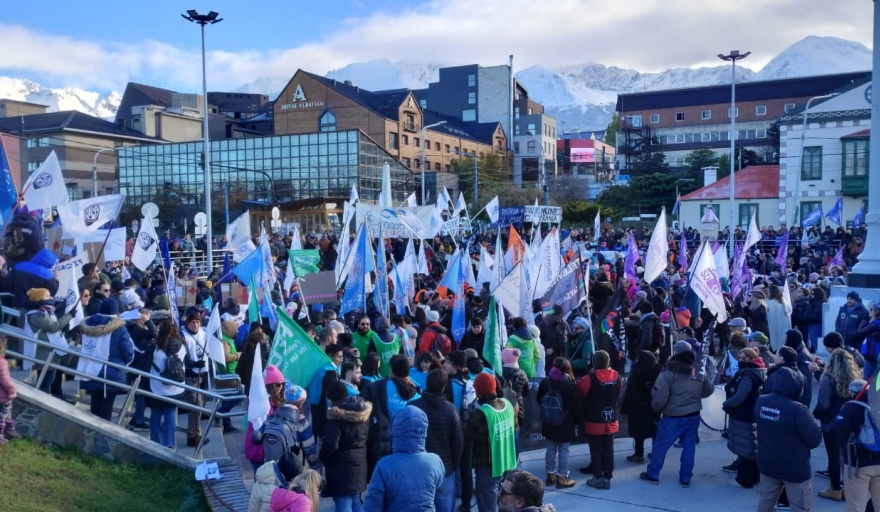 La convocatoria en la capital provincial fue a las 11 de la mañana, impulsada por las organizaciones que conforman la CGT local y con la suma de otros sectores gremiales, sociales y políticos. En el caso de Río Grande, la iniciativa fue de la Multisectorial de Derechos Humanos, pero también participaron organizaciones gremiales como la UOM, el SUTEF, AFUDI, ADUF y SADEM, sectores políticos de izquierda y militantes de organizaciones sociales; junto con vecinos y vecinas que concurrieron por su cuenta.