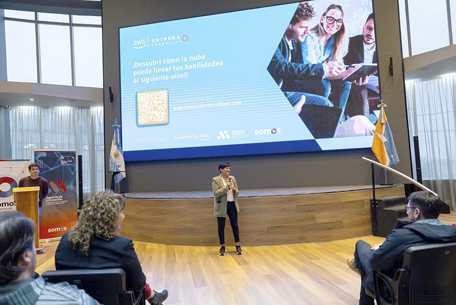 Carolina Piña, líder de Entrenamientos Masivos de AWS para América Latina, dijo que “de acuerdo con datos del Foro Económico Mundial, para el año 2027 el 22% de los trabajos que serán requeridos en Argentina aún no existen. Es por esto que debemos empezar hoy a desarrollar los talentos y capacidades del mañana”.