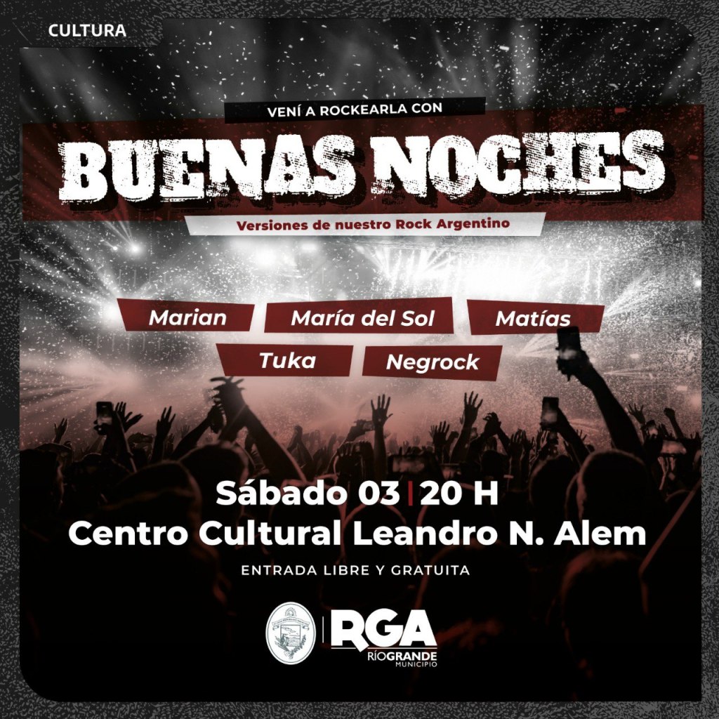 RÍO GRANDE.- El Municipio de Río Grande invita a los vecinos a ser parte de una noche de sábado a pura música, la cual será una oportunidad única para disfrutar del talento de “Buenas noches” en un ambiente íntimo y vibrante.