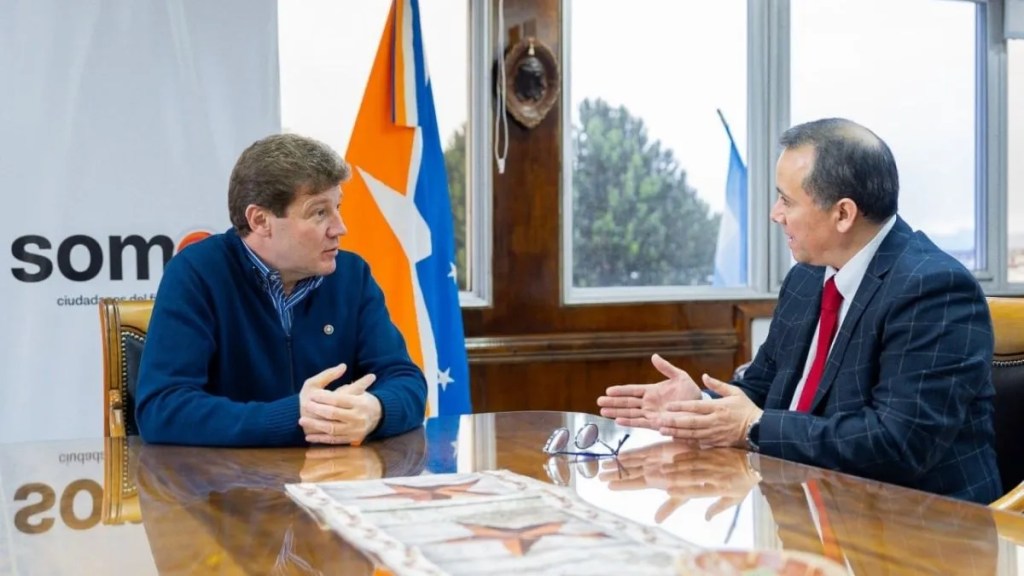 El gobernador Gustavo Melella mantuvo un encuentro con el cónsul de la República de Chile en Ushuaia, Rodrigo Toledo, durante el cual dialogaron acerca de agendas en común para profundizar las relaciones de cooperación entre el país trasandino y la provincia.