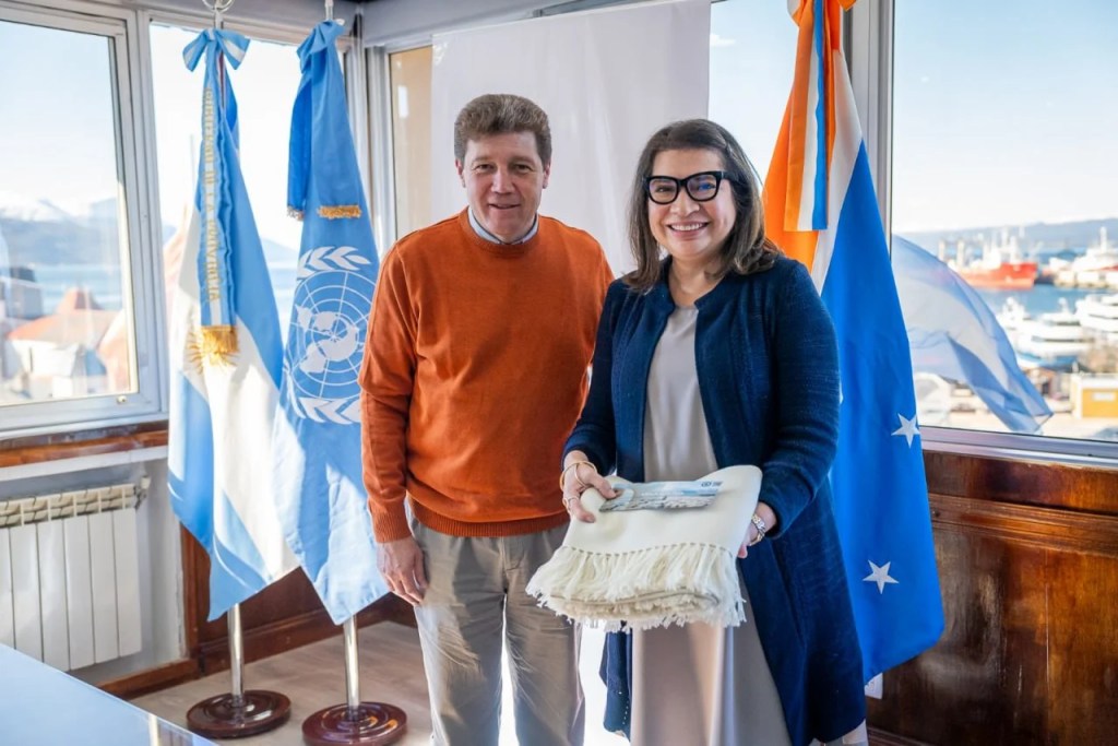 El gobernador Gustavo Melella recibió en Casa de Gobierno a la coordinadora Residente de Naciones Unidas en Argentina, Claudia Mojica.