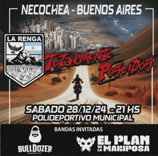 La banda de rock argentina La Renga confirmó que las bandas invitadas para su show en Necochea el 28 de diciembre serán El Plan de la Mariposa y Bulldozer Blues Band.