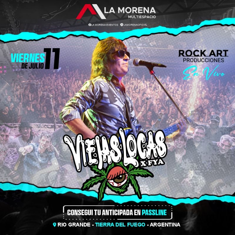 La icónica banda Viejas Locas se presentará en La Morena Eventos de Río Grande, Tierra del Fuego, el próximo viernes 11 de julio de 2025 a las 21:30 hs, con motivo de la celebración de los 30 años de su primer álbum homónimo. Las entradas están disponibles a través de Passline