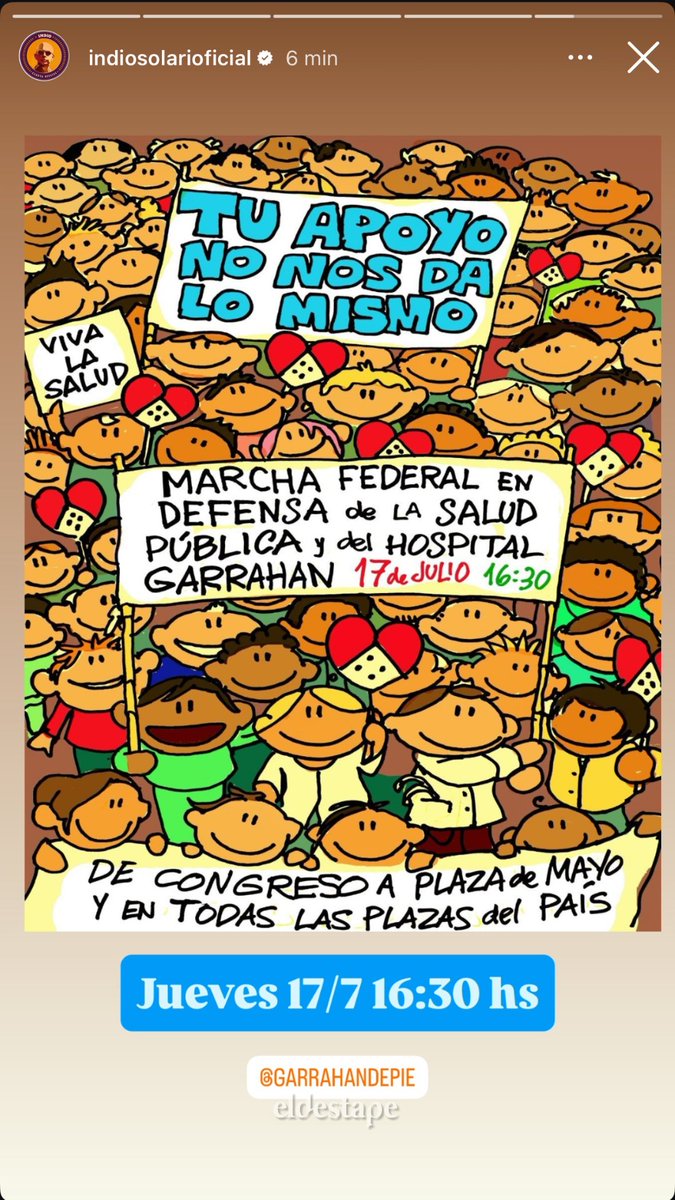 Así hizo público en las redes sociales su apoyo a la Marcha Federal en Defensa de la Salud Pública y el Garrahan.