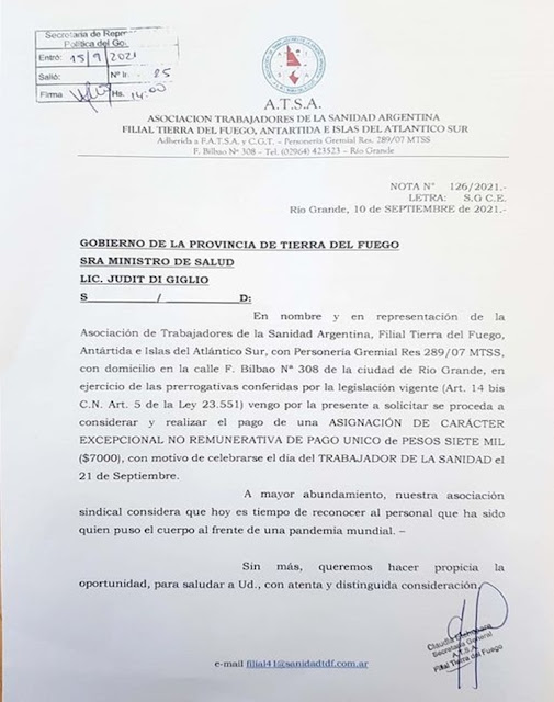 Por el ‘Día del Trabajador de la Sanidad’, ATSA pide al Gobierno un bono especial de 7 mil pesos, mediante una nota al Gobierno provincial aclarando que el pedido responde a la proximidad del ‘Día […]