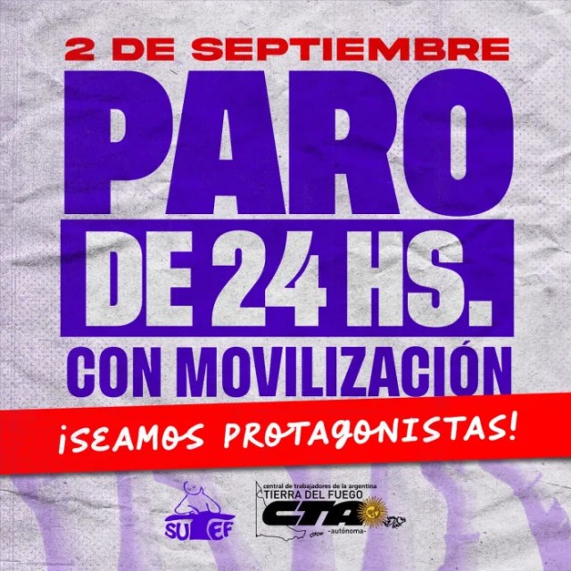 Desde el SUTEF confirmaron un paro provincial con movilización por 24 horas para este jueves 2 de septiembre. La medida de fuerza fue resuelta por el Congreso de Delegados. Ante la falta de acuerdo en […]