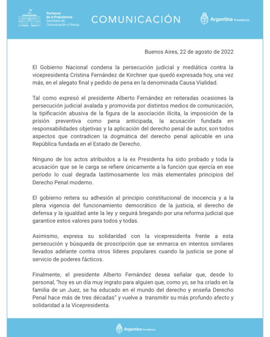 El Presidente lanzó un comunicado instantes después de que el fiscal Diego Luciani pidiera una condena de 12 años para la vicepresidenta Segundos después de que el fiscal Diego Luciana pidiera una condena de doce […]